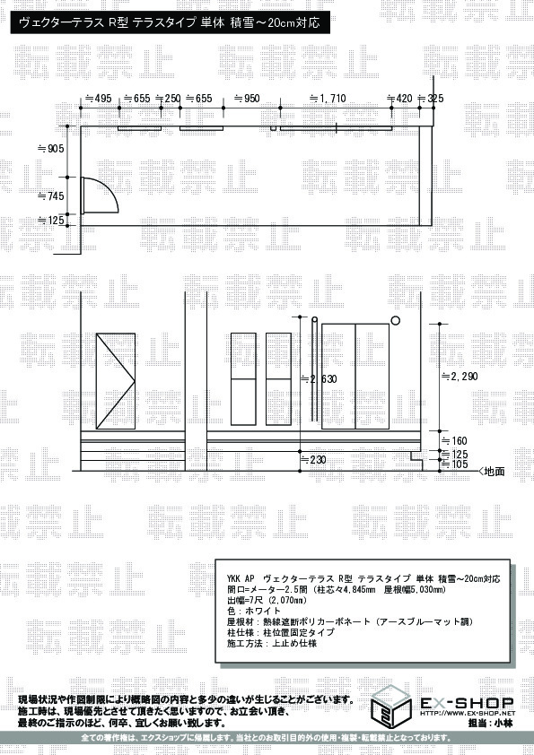 | サイズ | 屋根幅 5,030mm 出幅 5,030mm |