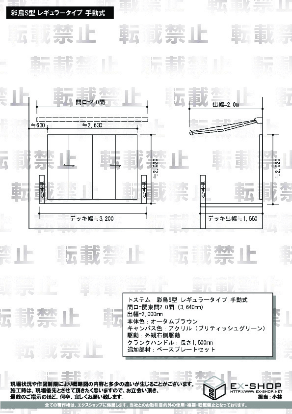 サイズ | 間口 3,640mm 出幅 2,000mm |
