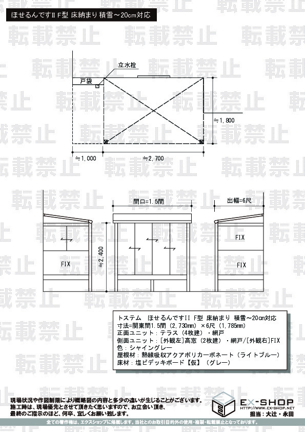 | 屋根材 | ポリカーボネート(クリアマット/すりガラス調) |
