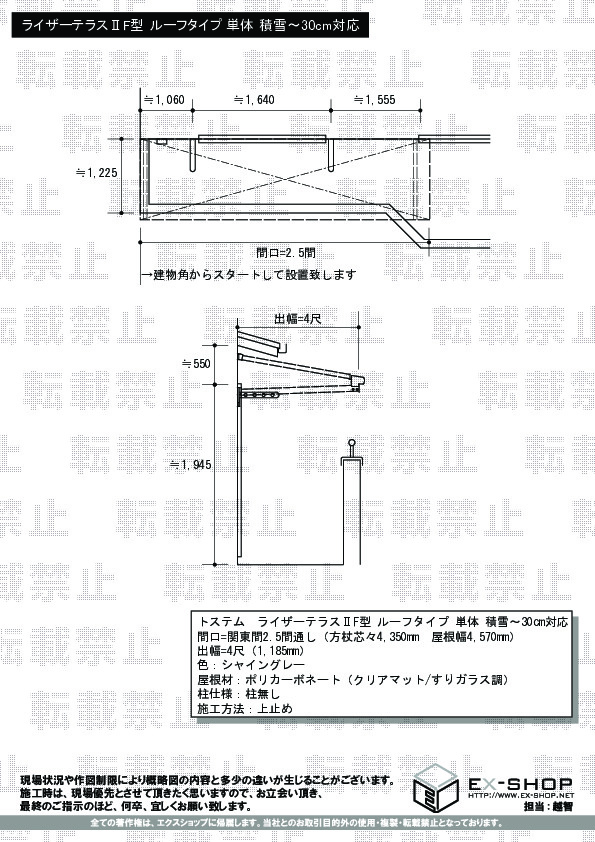 | サイズ | 屋根幅 4,570mm 出幅 1,185mm |