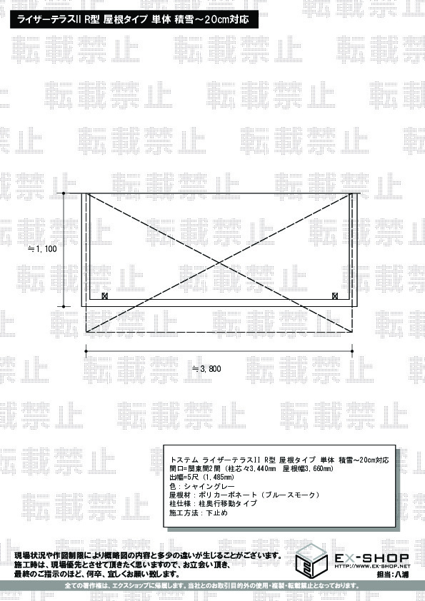 | サイズ | 屋根幅 3,660mm 出幅 1,485mm |