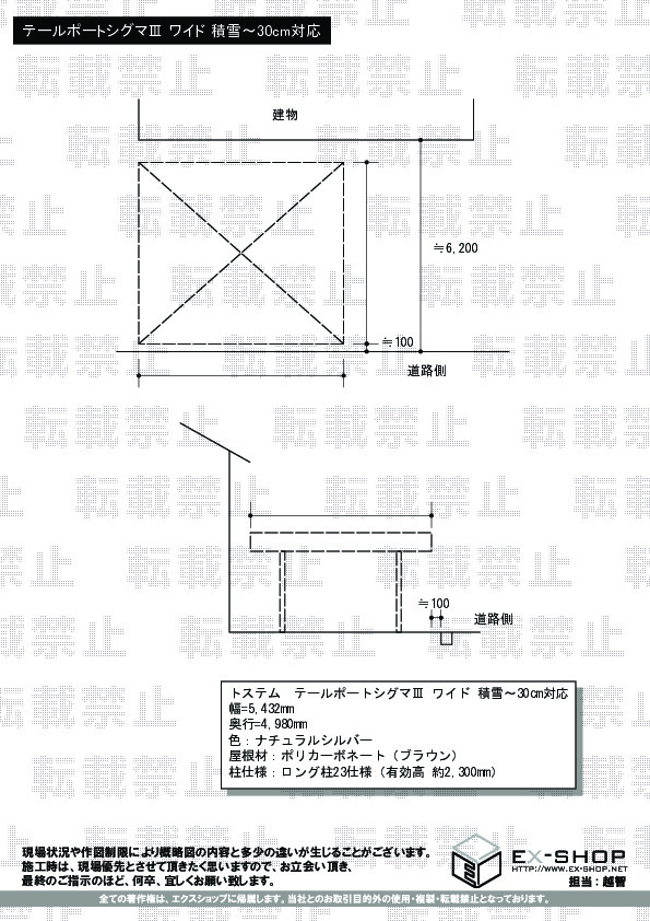 | 屋根高等 | ロング柱23仕様(有効高 約2,300mm) |