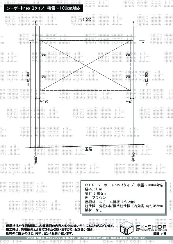 | 屋根高等 | 角柱6本/標準柱仕様(有効高 約2,355mm) |