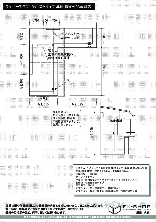 サイズ | 屋根幅 3,660mm 出幅 1,785mm |