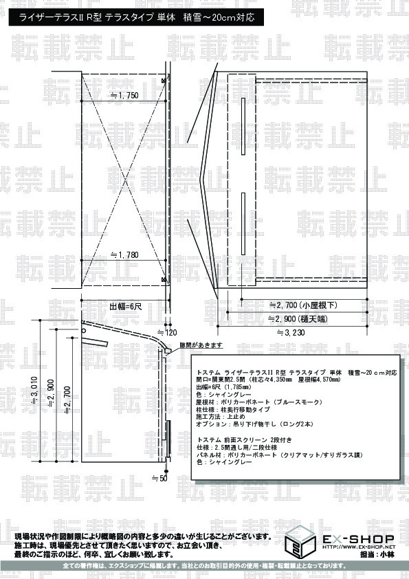 サイズ | 屋根幅 4,570mm 出幅 1,785mm |