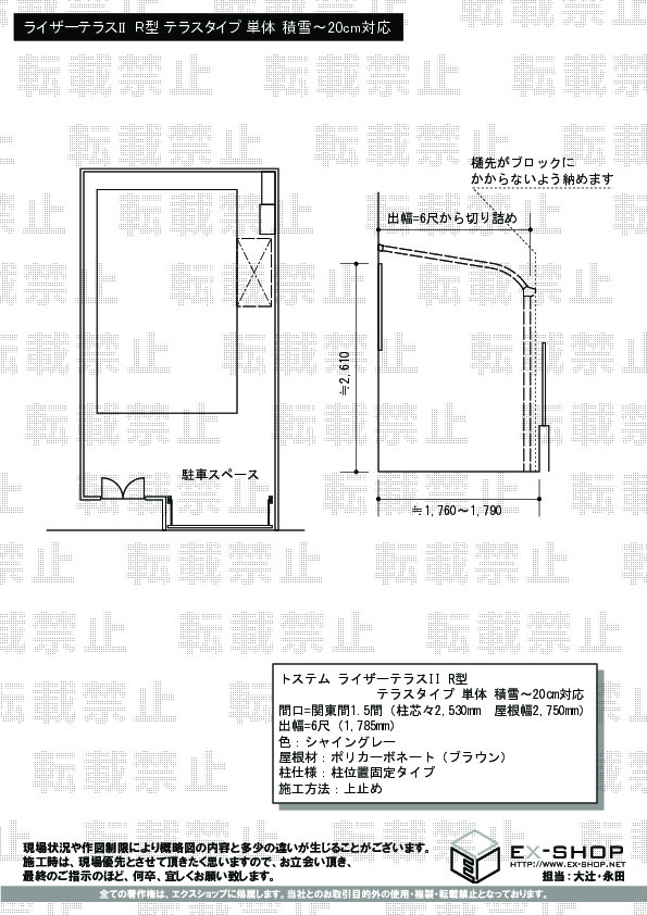 サイズ | 屋根幅 2,750mm 出幅 1,785mm |