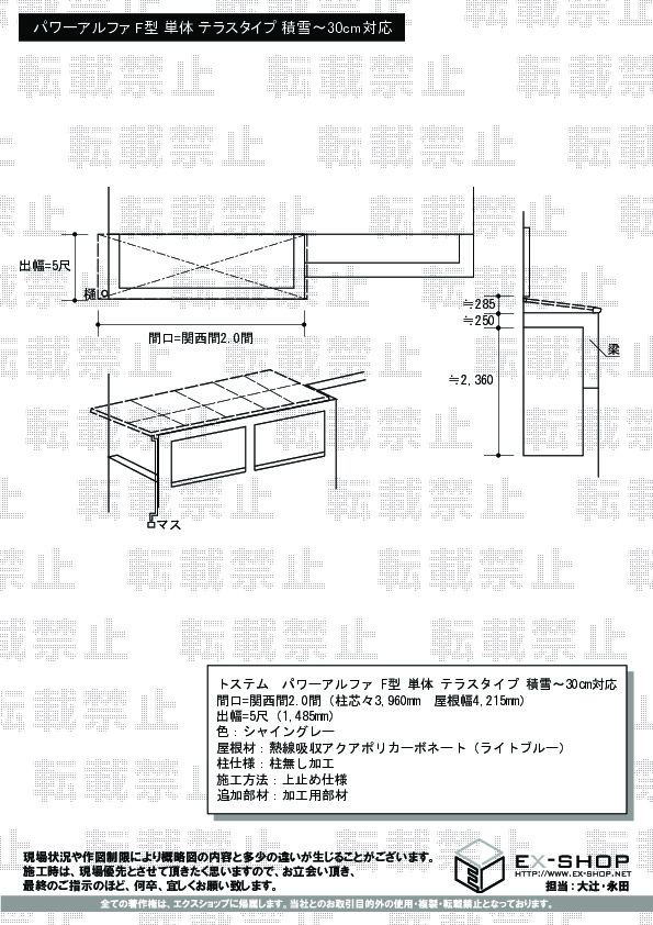 | サイズ | 屋根幅 4,215mm 出幅 1,485mm |