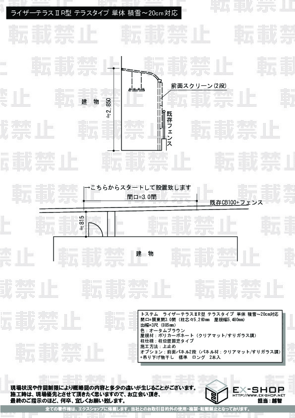 サイズ | 屋根幅 5,480mm 出幅 885mm |