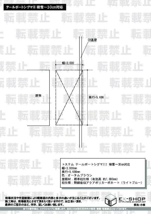 | サイズ | 幅 3,000mm 奥行 5,686mm |