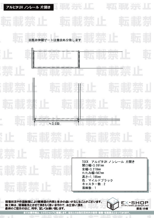 伸縮カーゲートの施工をご依頼頂きまして、誠に有り難うございます。ご連絡を頂いた際、弊社、営業時間外ということで、ご不便をおかけ致しましたこと、お詫び申し上げます。お客様のお声を受けて、提携施工店の窓口として、さらに安心してご利用頂けますよう、前向きに検討して参りたいと存じます。この度のご利用、誠に有り難うございました。また機会がございましたら、是非エクスショップにご用命くださいますよう、宜しくお願い致します。