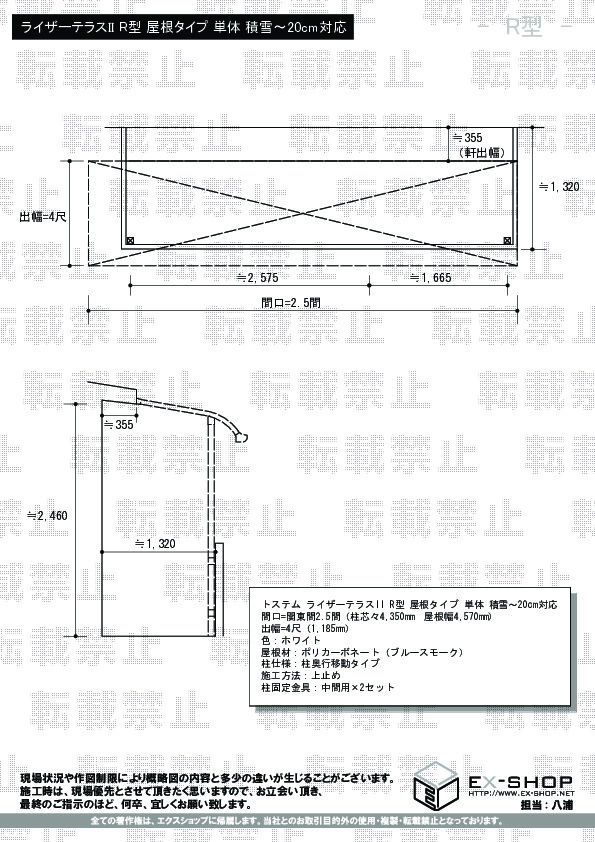 サイズ | 屋根幅 4,570mm 出幅 1,185mm |