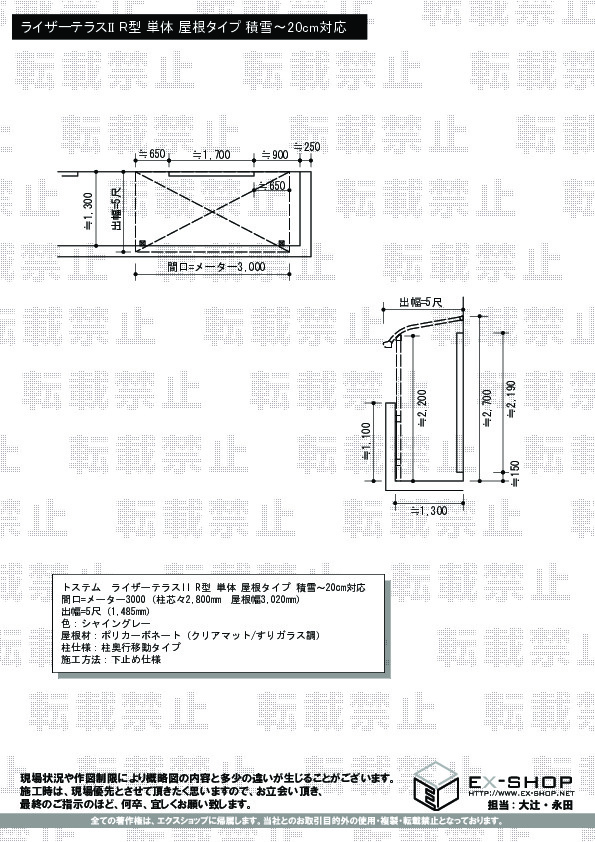 | サイズ | 屋根幅 3,020mm 出幅 1,485mm |