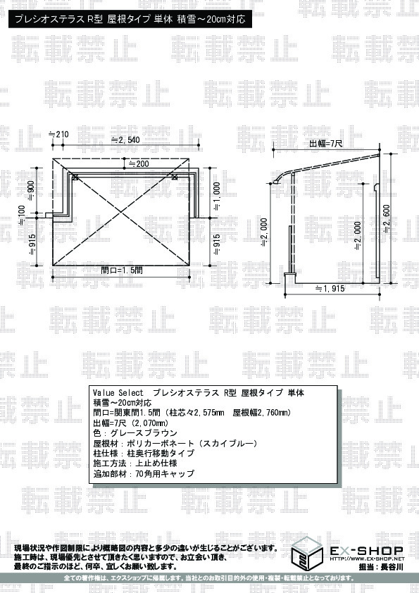 | サイズ | 屋根幅 2,760mm 出幅 2,070mm |