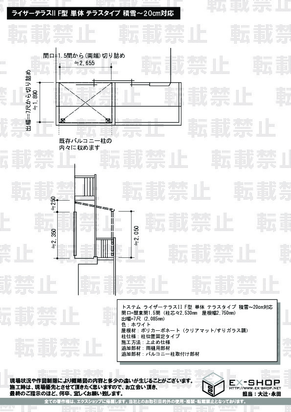 サイズ | 屋根幅 2,750mm 出幅 2,085mm |