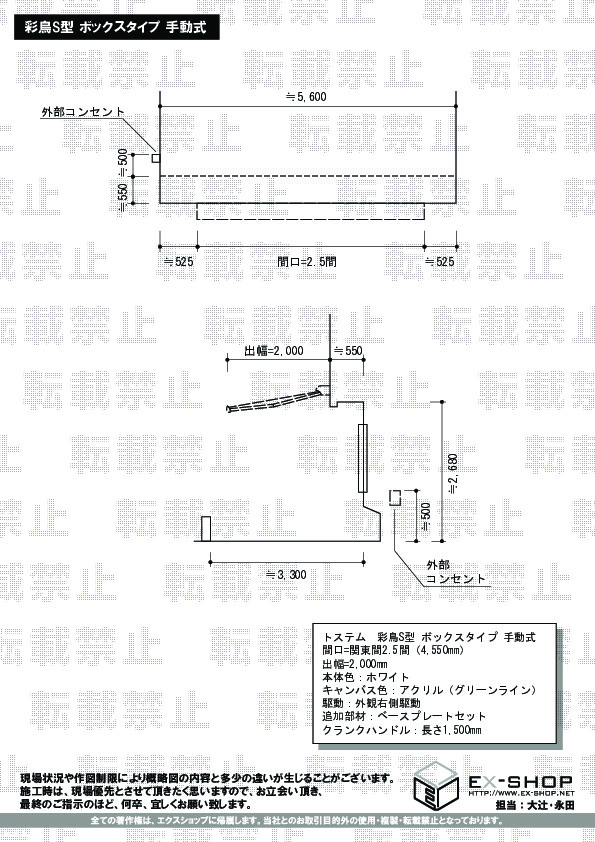 | サイズ | 間口 4,550mm 出幅 2,000mm |