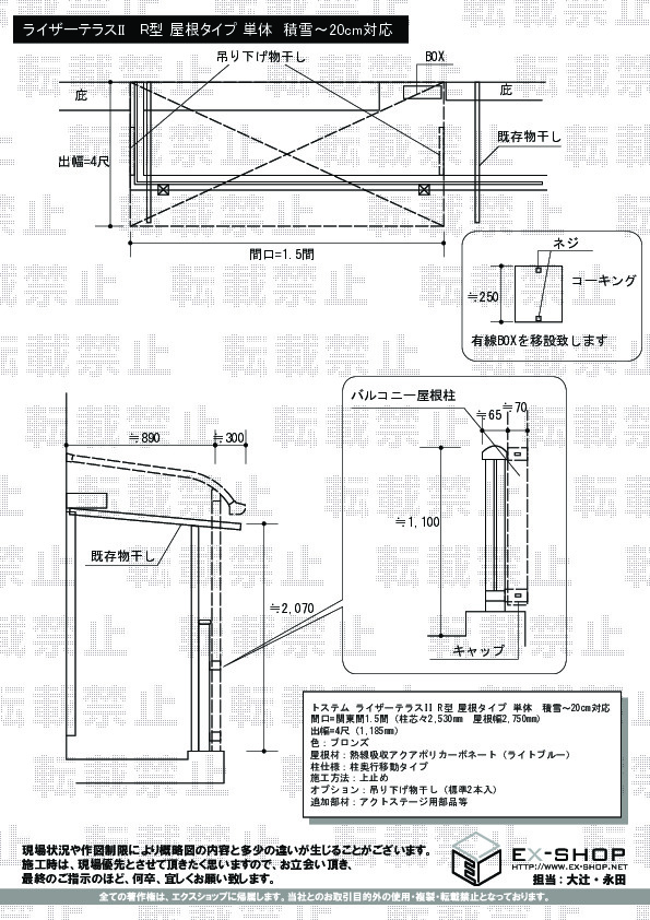 サイズ | 屋根幅 2,750mm 出幅 1,185mm |