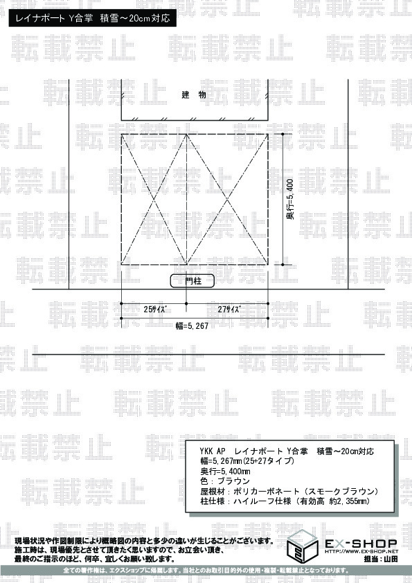 駐車場があまり広くはなかったので、両脇ではなく中央のみのY合掌のものにしました。 想定通り、利便性が高く満足しています。