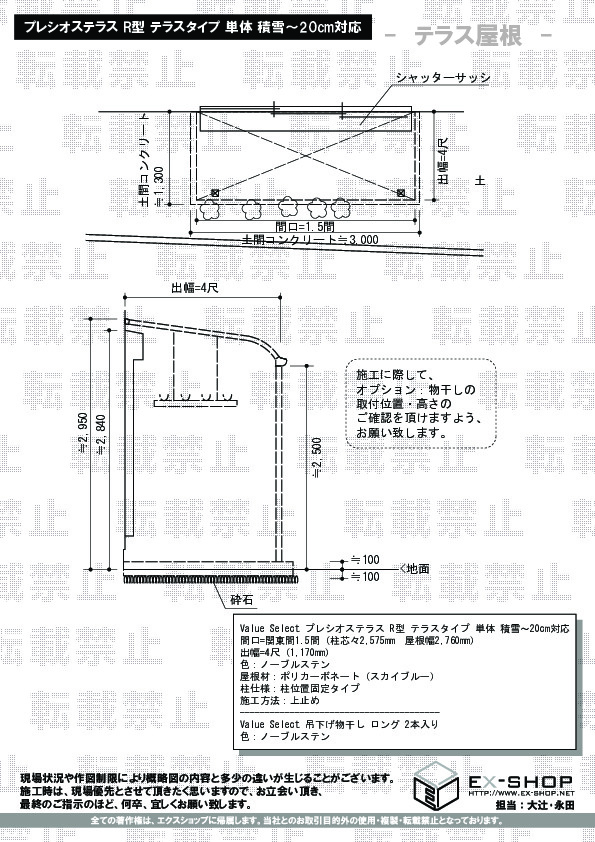 | サイズ | 屋根幅 2,760mm 出幅 1,170mm |