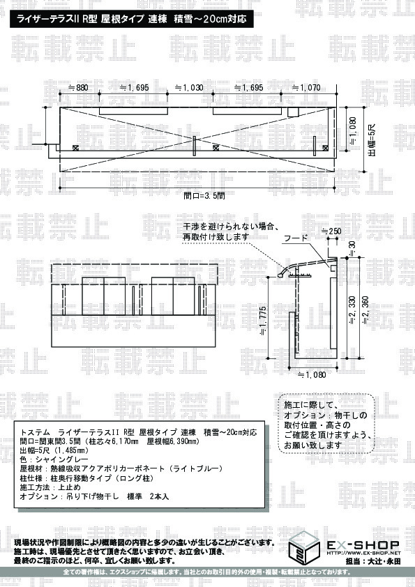 | サイズ | 屋根幅 6,390mm 出幅 1,485mm |