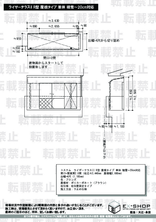 サイズ | 屋根幅 3,660mm 出幅 1,185mm |