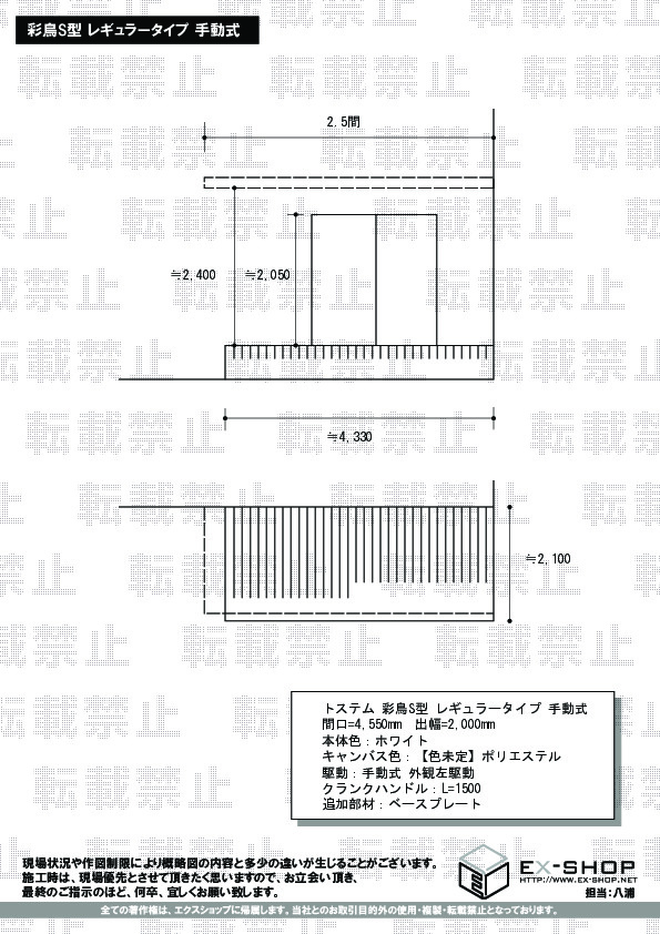サイズ | 間口 4,550mm 出幅 2,000mm |
