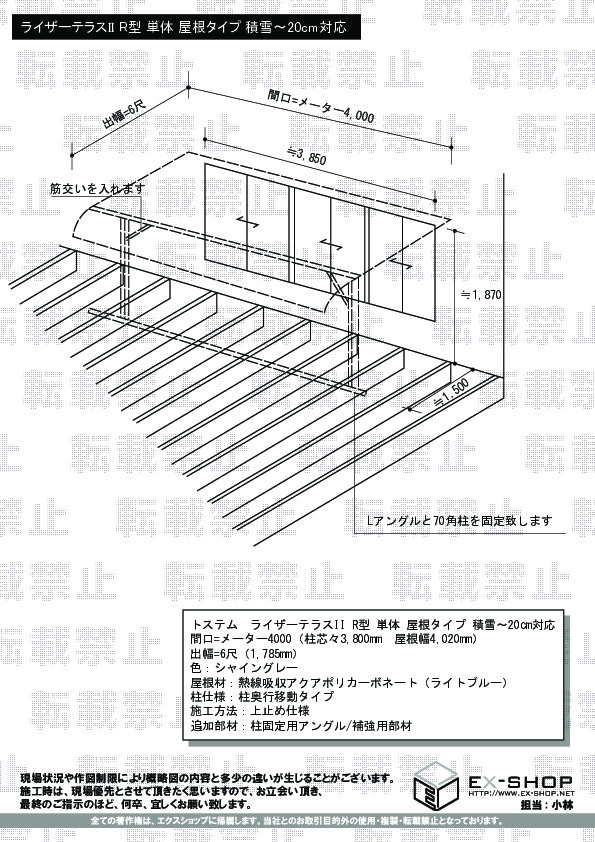 | サイズ | 屋根幅 4,020mm 出幅 1,785mm |