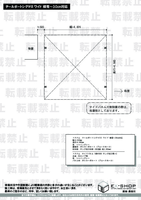 | 屋根材等 | ポリカーボネート(ブルースモーク) |