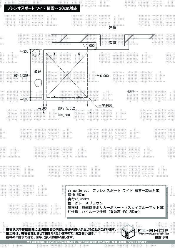 顔のみえないネット販売で、しかも高額の商品ともなれば、ご不安に思われるのもごもっともでございます。にもかかわらず、弊社を信頼して、施工までお任せ下さり、誠に光栄でございます。担当致しました施工士もご期待にお応えすることができ、大変喜んでおります。グレースブラウンのかっこいいプレシオスポートが、堂々と敷地に納まり、存在感のある仕上がりでございますね。ハイルーフ仕様かつワイドタイプの大きなカーポートでございますので、お車も広々と駐車して頂けるものと存じます。これからも、お客様の笑顔の為に、日々努力して参りたいと存じますので、また、機会がございましたら、是非エクスショップをご利用頂けますよう、宜しくお願い致します。