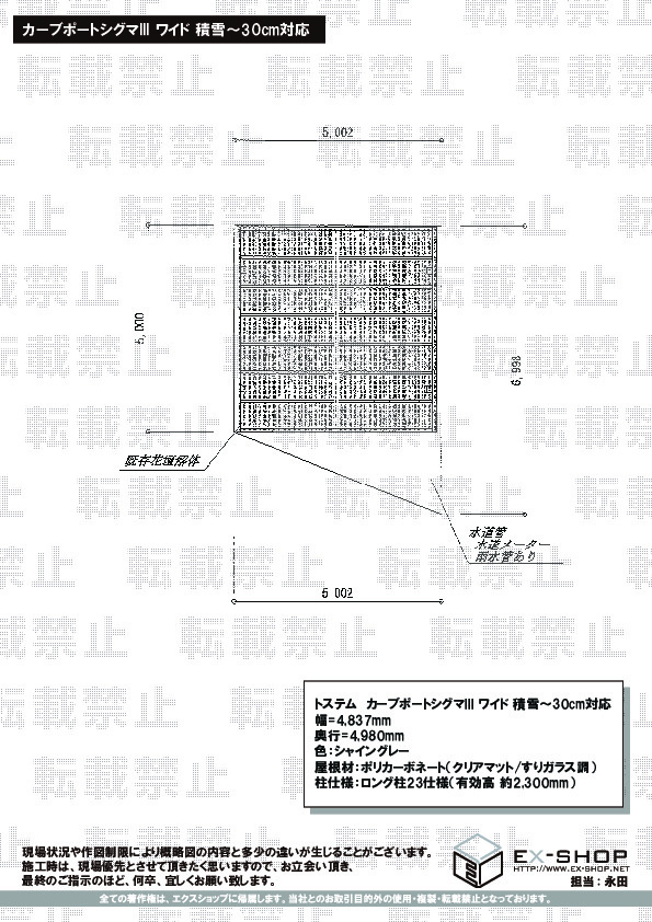 | 屋根材等 | ポリカーボネート(クリアマット/すりガラス調) |