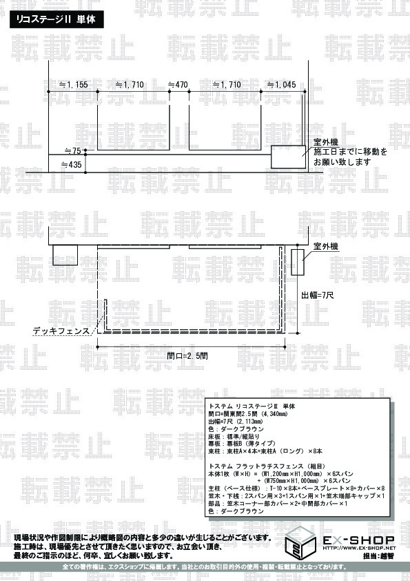 綺麗な土間打ちコンクリートの上に、窓の高さにぴったりと合った高さのリコステージUがしっかりと施工出来ましたこと、大変嬉しく存じます。フラットラチスフェンスも同時に取り付けさせて頂きましたが、存在感があり、美しい仕上がりでございますね。ダークブラウンのお色もお住まいのサッシとマッチしており、素敵でございます!また、弊社対応に温かいお褒めのお言葉を頂き、誠に光栄でございます。お顔をあわすことはかないませんが、素敵なお客様に支えられて、お仕事をさせて頂いておりますことを大変嬉しく存じます。これからも、お客様の笑顔の為に、日々努力して参りたいと存じますので、また、機会がございましたら、是非エクスショップをご利用頂けますよう、宜しくお願い致します。