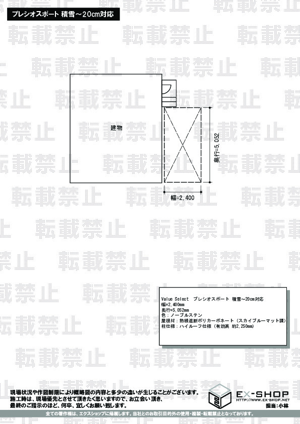 サイズ | 幅 2,400mm 奥行 5,052mm |