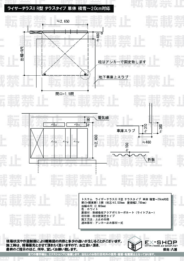サイズ | 屋根幅 2,750mm 出幅 2,685mm |