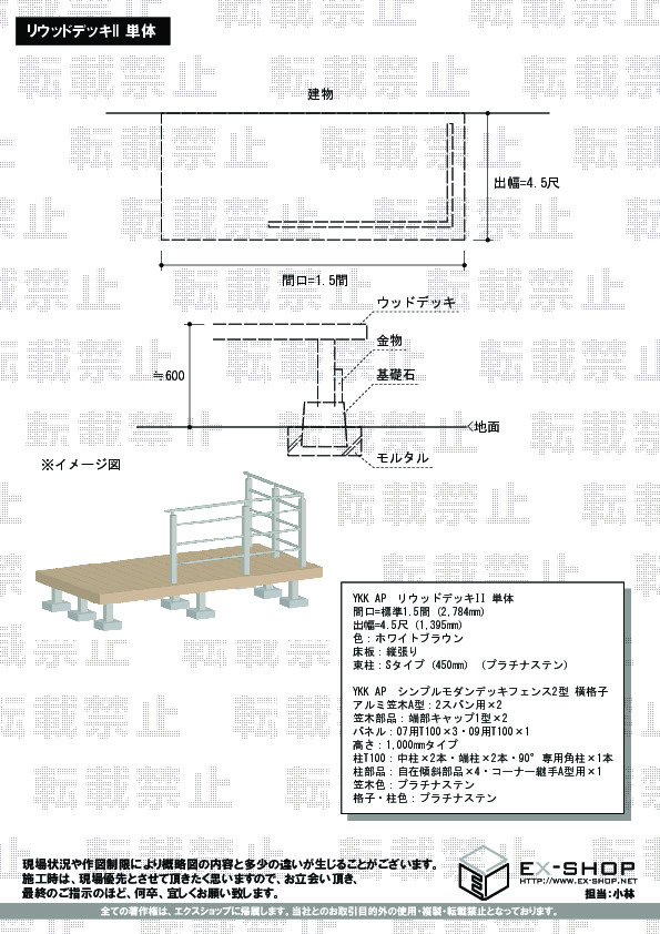 インターネットでのお買い物は顔の見えないお取引となりますので、お客様がご不安に思われることのないよう、お電話とメールにて、随時ご連絡を差し上げております。この様なお言葉を頂き、大変光栄に存じます。明るいお色のリウッドデッキIIに、全く質感の違うシンプルモダンデッキフェンスが綺麗にマッチして、お洒落なお仕上がりでございますね。ご満足頂き、何よりも嬉しく存じます。これからも、お客様のご期待を裏切らないよう精進して参りますので、また機会がございましたら、ぜひエクスショップをご利用頂けますよう、宜しくお願い致します。