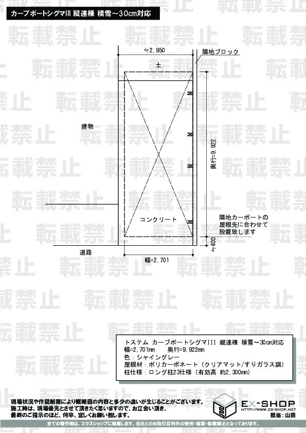 | 屋根高等 | ロング柱23仕様(有効高 約2,300mm) |