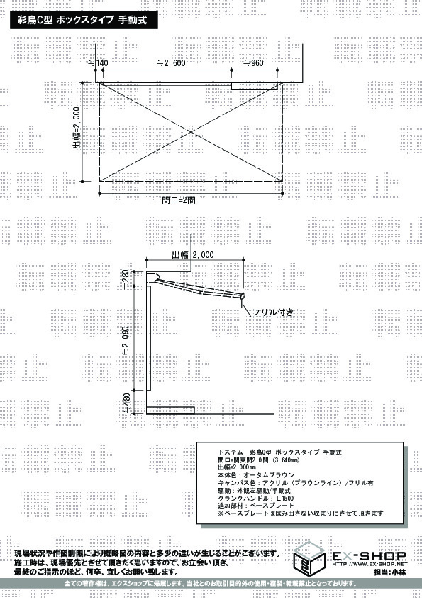 | サイズ | 間口 3,640mm 出幅 2,000mm |