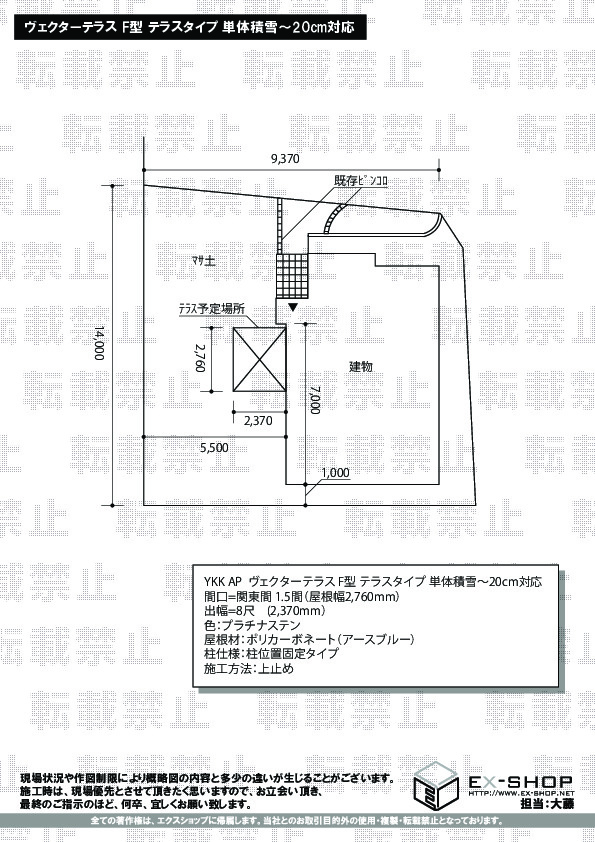 | サイズ | 屋根幅 2,760mm 出幅 2,370mm |