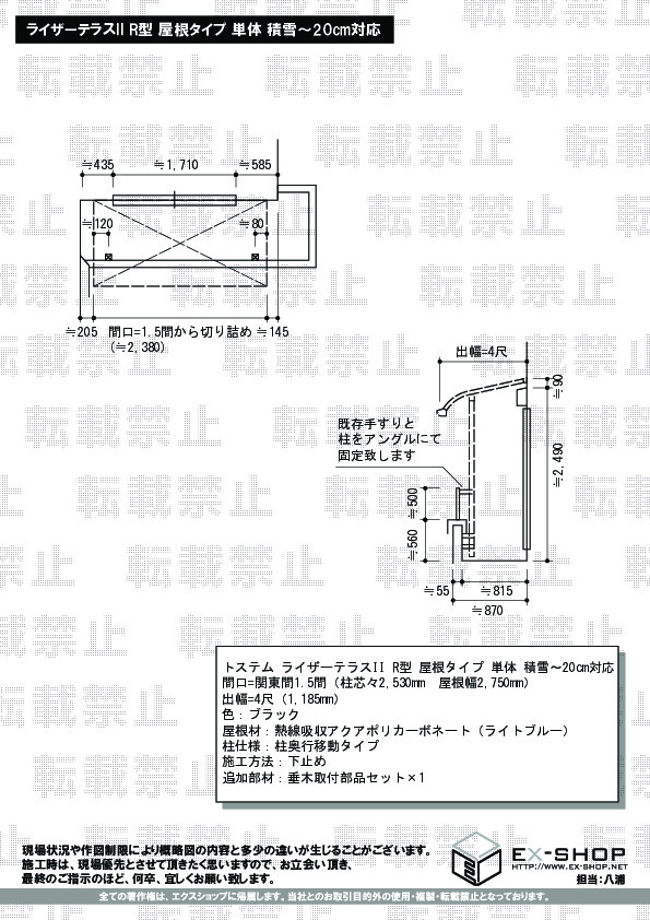 サイズ | 屋根幅 2,750mm 出幅 1,185mm |