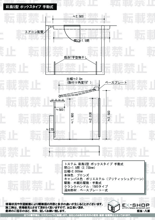 サイズ | 間口 2,730mm 出幅 2,000mm |
