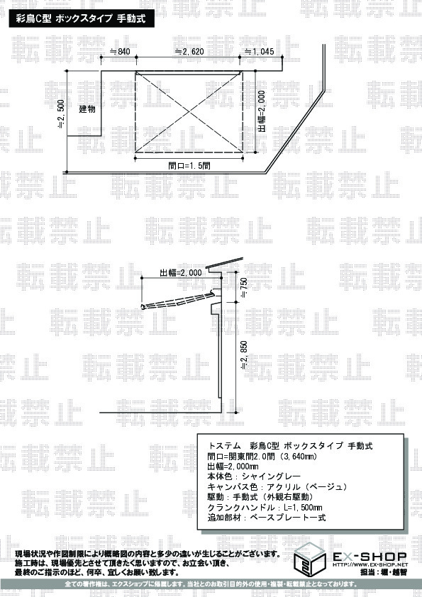 | サイズ | 間口 3,640mm 出幅 2,000mm |