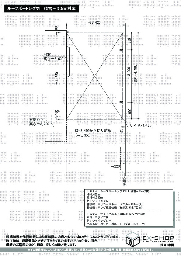 | 屋根高等 | ロング柱23仕様(有効高 約2,732mm) |