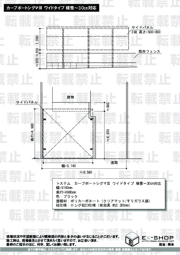 | 屋根材等 | ポリカーボネート(クリアマット/すりガラス調) |