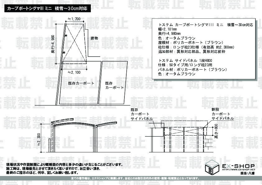 大変嬉しいお喜びのお声を頂き、誠に光栄でございます!弊社所在地が神戸でございますので、遠方のお客様はご不安な思いをなさることもあるかと存じ、申し訳なく思っております。顔の見えないインターネット取引ではございますが、常にお客様を意識し、お客様の立場にたってご説明するよう心がけておりますので、このようなお褒めのお言葉を頂くのは一番の喜びでございます。既存カーポートに干渉することなく、お客様のご要望に応じた配置で施工出来ましたことは、スタッフ・施工士にとりましても自信となりました。カーブポートシグマIII ミニの施工により、より快適にお住まいスペースを活用して頂けているようで、大変嬉しく存じます。これからも、このようなお褒めのお言葉を励みに、さらにご満足頂けるエクスショップを目指して、努力して参りたいと存じます。この度のご利用、誠に有難うございました。