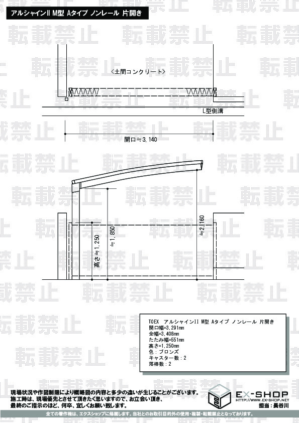 カラー:ブロンズ 規格幅:4180 (mm) 規格高:1150 (mm)