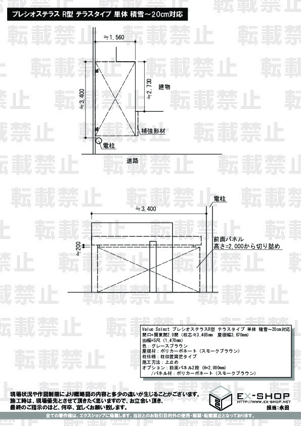 サイズ | 屋根幅 2,760mm 出幅 1,470mm |