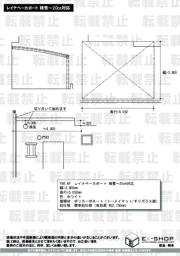 屋根高等 | 標準柱仕様(有効高 約2,000mm) |