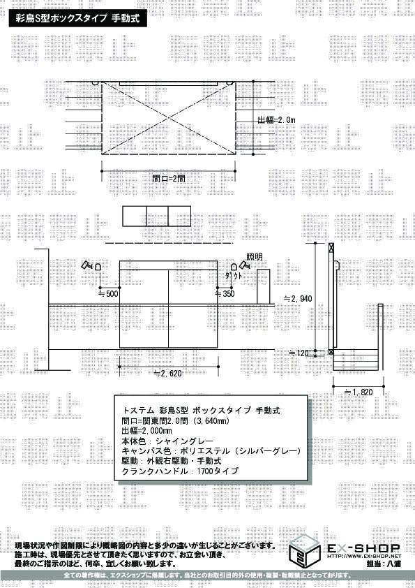 サイズ | 間口 3,640mm 出幅 2,000mm |