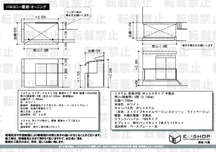 サイズ | 間口 2,575mm 出幅 1,485mm |