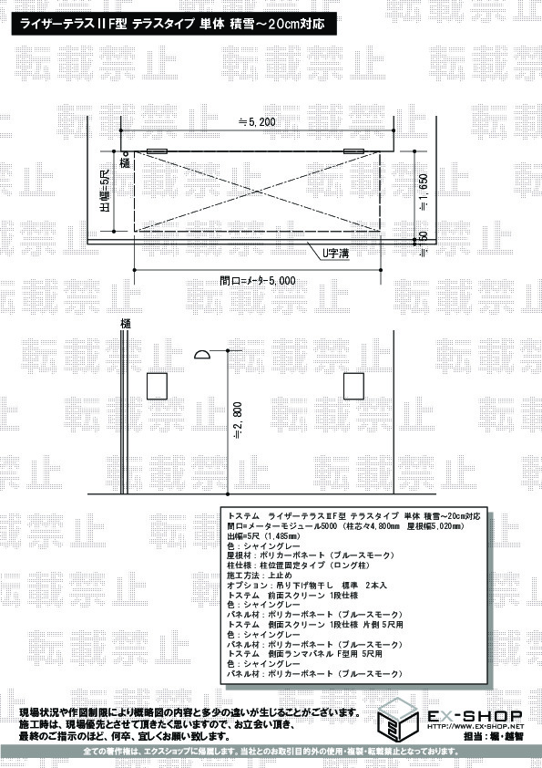 サイズ | 屋根幅 5,020mm 出幅 1,485mm |
