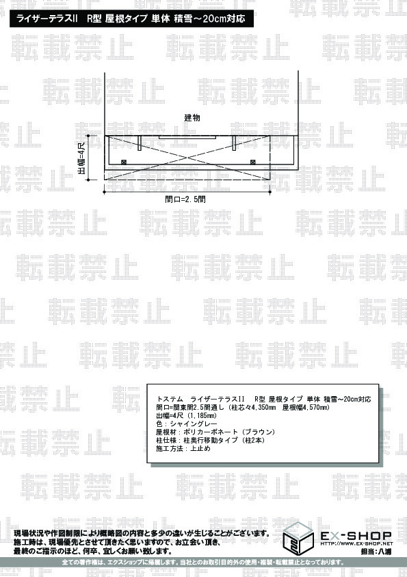 | サイズ | 屋根幅 4,570mm 出幅 1,185mm |