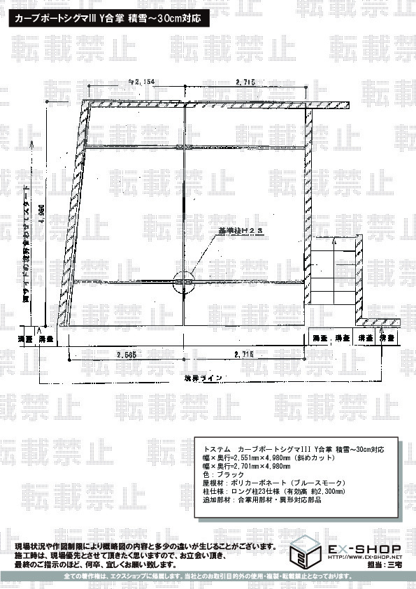 | 屋根高等 | ロング柱23仕様(有効高 約2,300mm) |